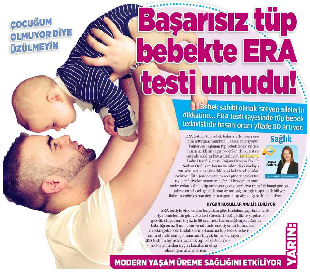 Kadın Hastalıkları Doğum ve Tüp Bebek Uzmanı Doç. Dr. Serkan Oral, bebek sahibi olmak isteyen ailelerin ERA testi sayesinde tüp bebek tedavisinde başarı oranının yüzde 80 arttığını anlattı.