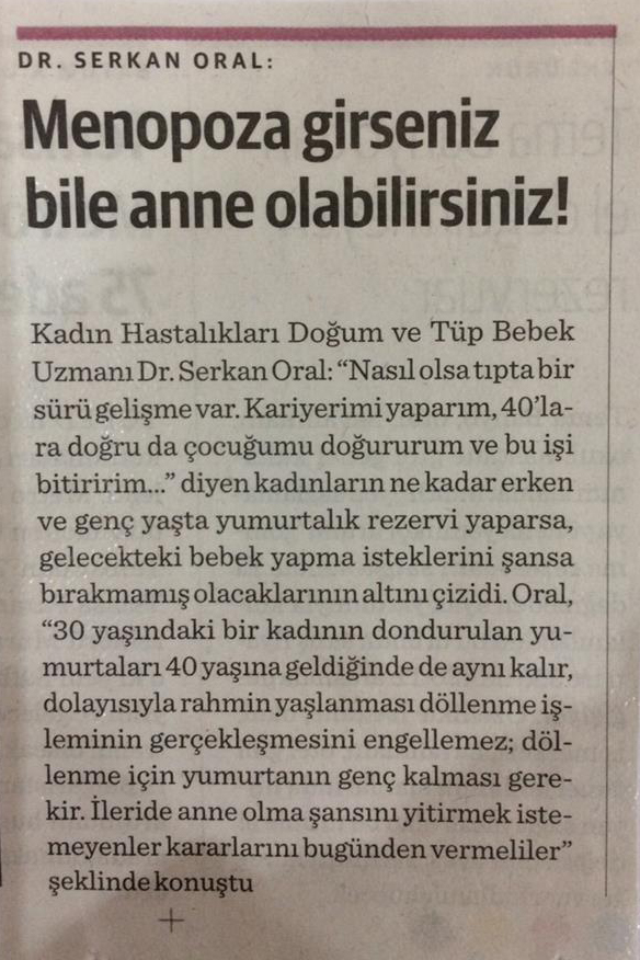Kadın Hastalıkları Doğum ve Tüp Bebek Uzmanı Doç. Dr. Serkan Oral, genç yaşta yumurta dondurmayla menopozda anne olunabileceğini anlattı.