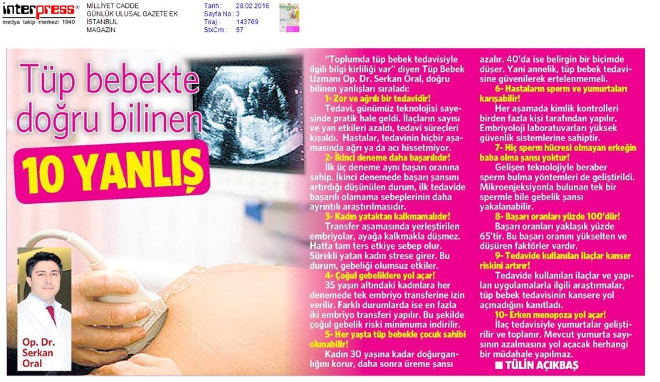 Toplumda Tüp Bebek Tedavisi ile ilgili bilgi kirliliği olduğunu söyleyen Kadın Hastalıkları Doğum ve Tüp Bebek Uzmanı Doç. Dr. Serkan Oral, doğru bilinen yanlışları sıraladı.